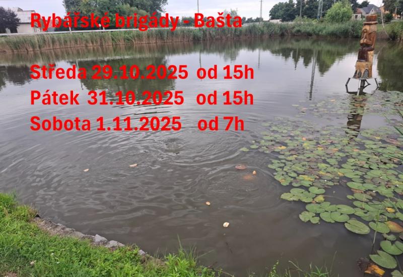 Napsal uživatel administrator dne Čt, 23/10/2025 - 07:57. Rybářské brigády - Bašta:středa 29.10.2025 od 15:00pátek 31.10.2025 od 15:00sobota 1.11.2025 od 7:00.