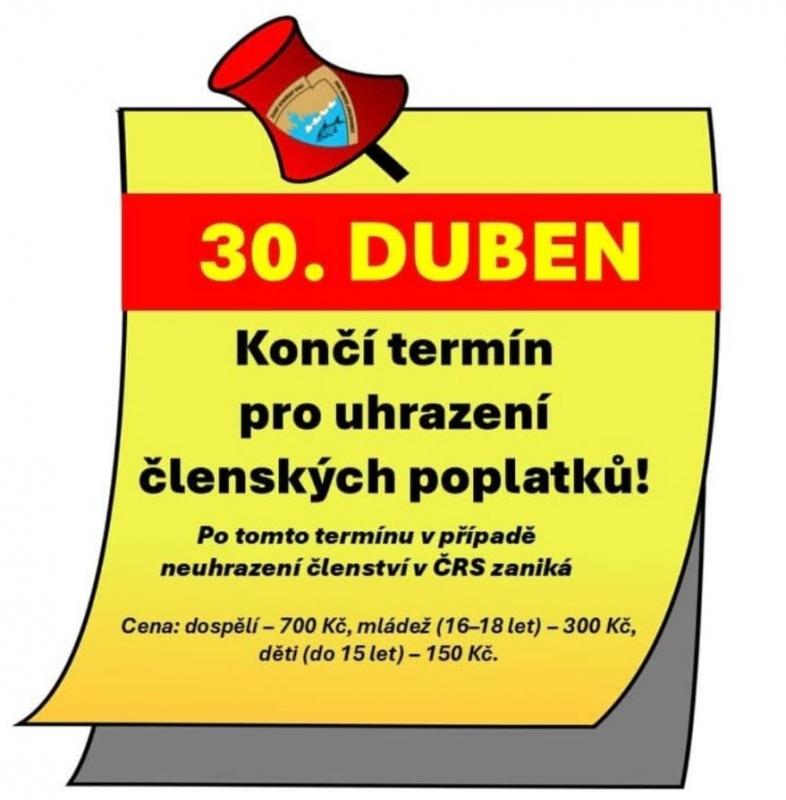 Napsal uživatel administrator dne Út, 28/04/2026 - 06:28. 30.dubna končí termín pro uhrazení členských poplatků.